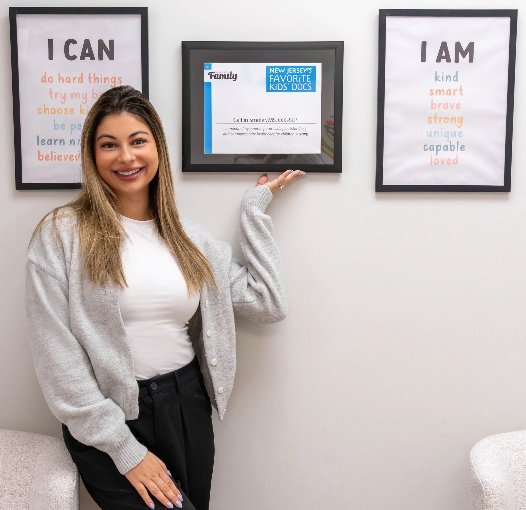 In addition to my clinical work, I am a published children’s book author and was honored to be named New Jersey’s Favorite Kids’ Doc in 2025. These experiences fuel my passion for helping children find their voices and thrive in every environment.